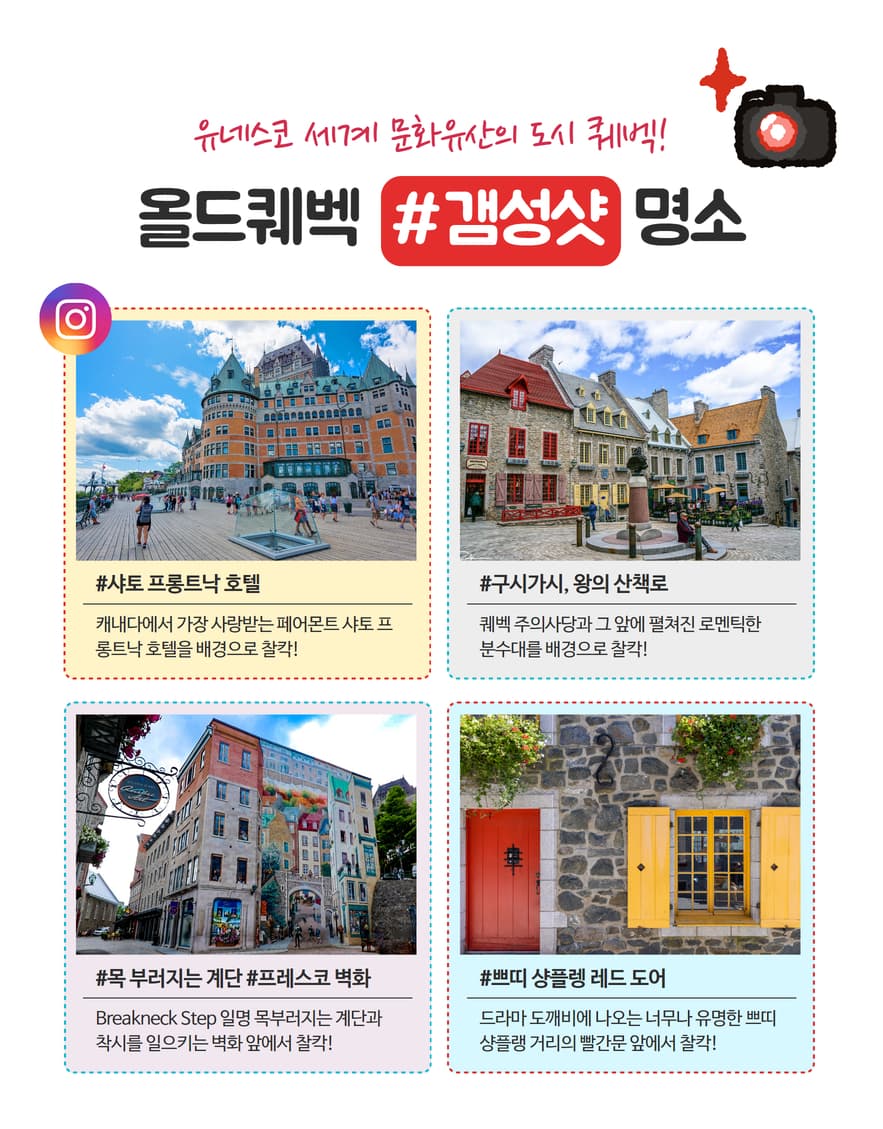 • 드라마 "도깨비"의 바로 그 장소! 도시 전체가 세계 문화유산의 도시인 올드퀘벡에서 인생샷!