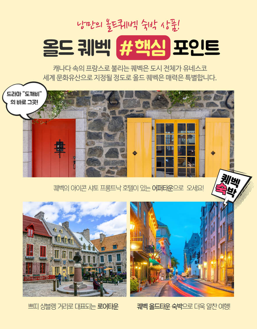 • 나이아가라 폭포 도보거리 호텔 숙박! 낭만의 올드퀘벡 숙박!