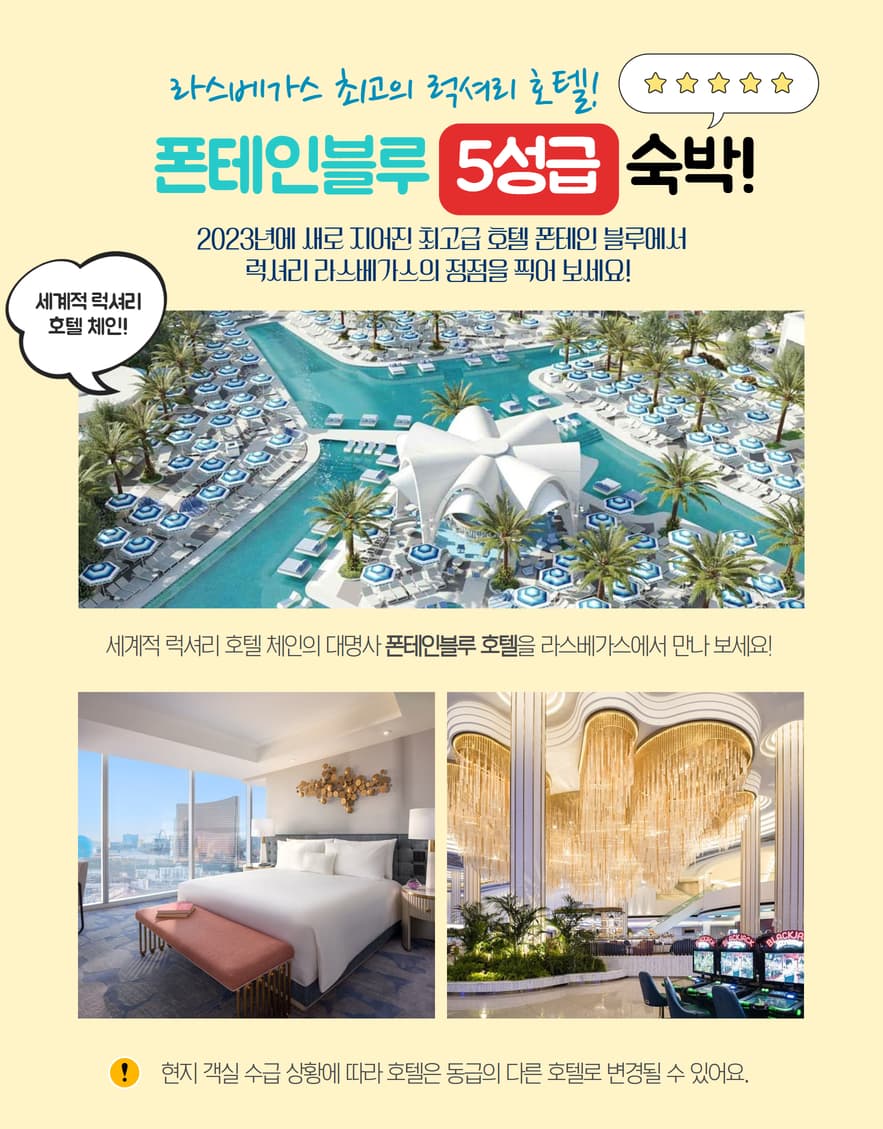• 라스베가스 최고의 럭셔리 호텔, 폰테인블루 숙박(5성급)!