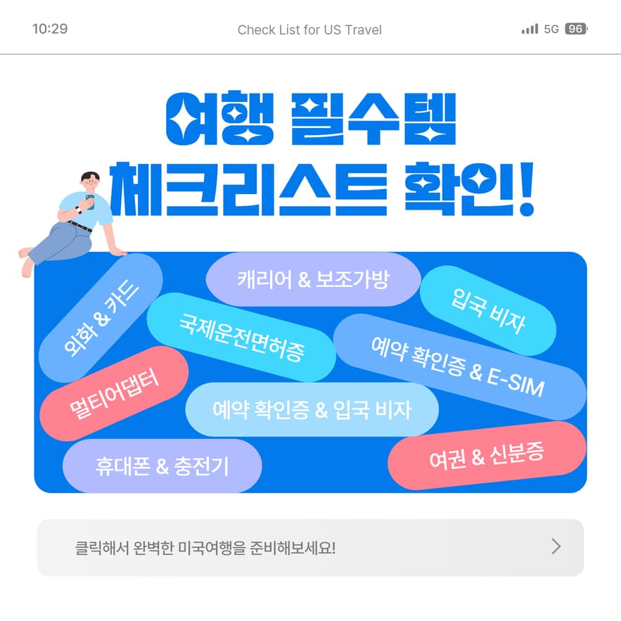 ✔️ 한국 국적자가 관광 목적으로 미국을 방문하는 경우: 왕복 항공권, ESTA(전자여행 허가제), 여권(만료일은 출발일로 부터 6개월 이상 남아있어야 함)