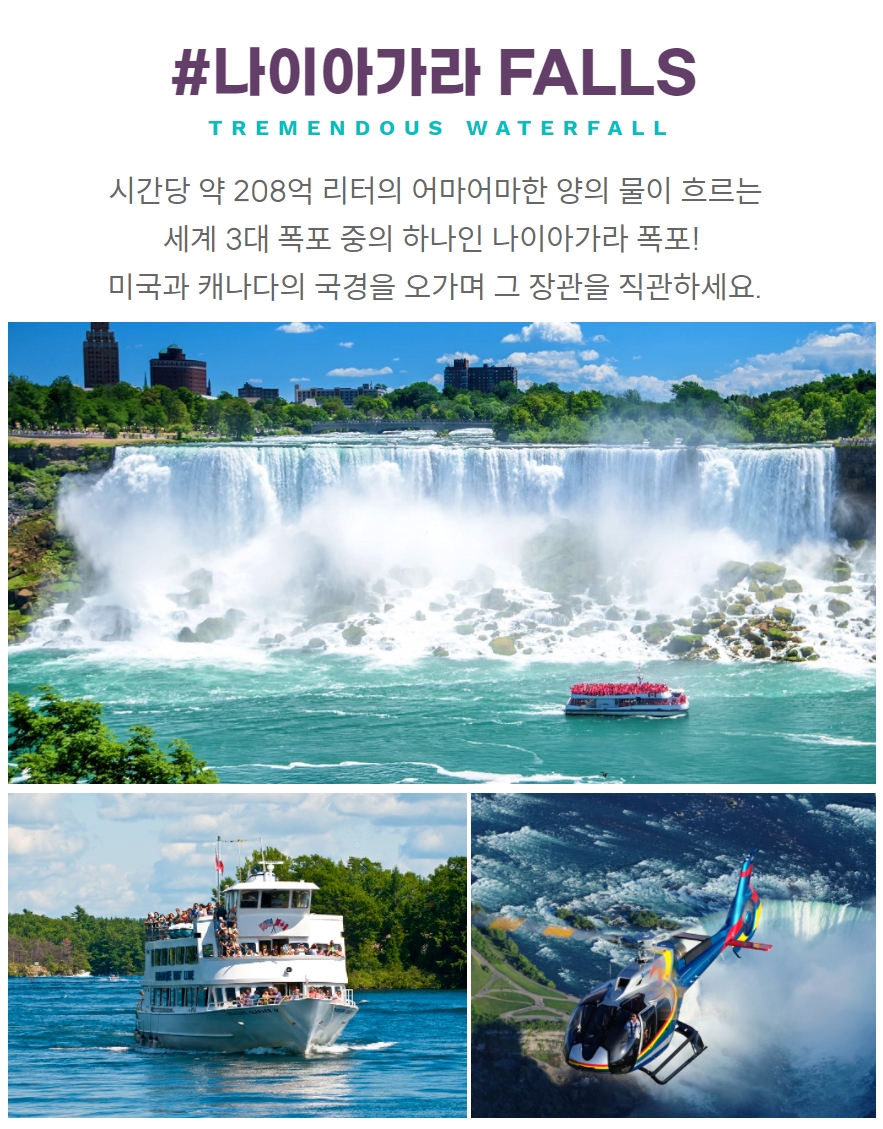 • 세계 3대 폭포 중 하나인 나이아가라 폭포의 위용을 눈앞에서 목도!