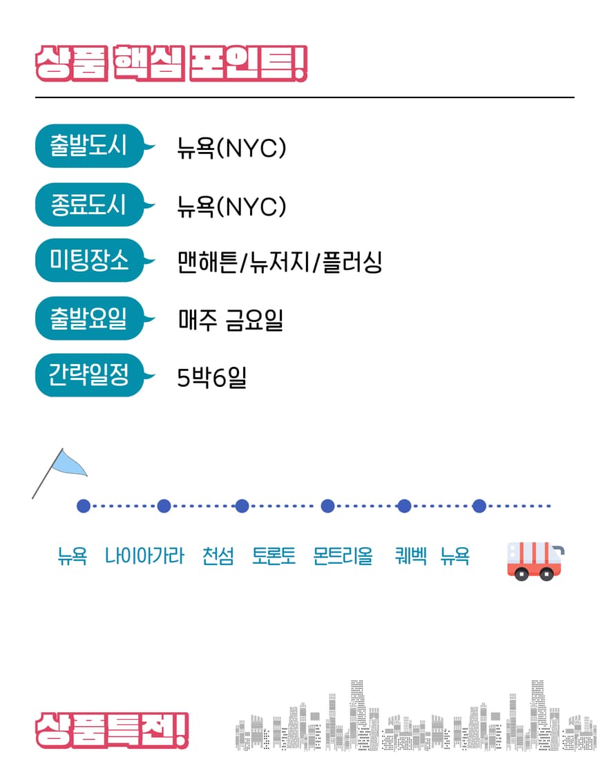 • 📍 해당 상품은 뉴욕 지역(맨해튼/플러싱/뉴저지)에서 집결 후 출발하는 현지 출발 상품입니다.